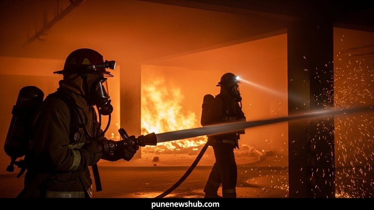 पुणे के मध्य में स्थित गुरुवार पेठ इलाके में बुधवार तड़के एक रिहायशी इमारत की पार्किंग में आग लगने से हड़कंप मच गया। घटना के बाद पूरी इमारत में घना धुआं भर गया, जिससे निवासियों में दहशत फैल गई। पुणे फायर ब्रिगेड की त्वरित कार्रवाई की बदौलत इमारत में फंसे सभी 45 निवासियों को सुरक्षित बाहर निकाल लिया गया।
